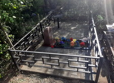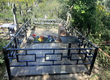 Также мы обновили надпись на надгробье и покрасили установленный на участке столик в чёрный цвет. На этом наша работа над данным местом захоронения оканчивается, состояние могилы после благоустройства можно увидеть на приведённых ниже фотографиях.
