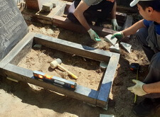 Пока семена всходили, мы восстановили надписи на памятниках, а также протёрли сами надгробья специальной жидкостью, защищающей гранит.