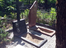 На фотографиях ниже видно промежуточное состояние места захоронения после укладки наземного покрытия и восстановления цветника.