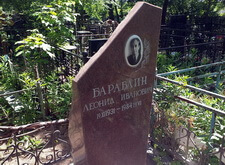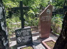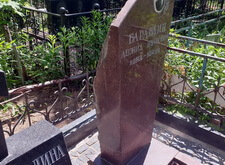 Вертикальный памятник из красного гранита было решено не трогать, и работы по его восстановлению проводились на установленном надгробье: мы восстановили надпись на памятнике и удалили образовавшийся на камне налёт.