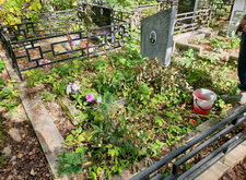 Приехав на участок вновь, мы принялись за установку ограждения, предварительно прополов место захоронения и демонтировав старые памятник с цветником.