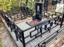 В ходе работы над данным заказом нам предстояло полностью благоустроить место захоронения: установить ограждение, изготовить памятник, а также покрыть землю на участке гранитной брусчаткой. Выехав на кладбище для точной оценки проекта, мы застали захоронение в следующем виде: на могиле был установлен памятник, бетонный цветник и бетонное же основание, а территория участка густо заросла травой.