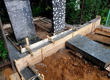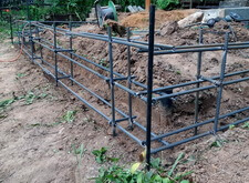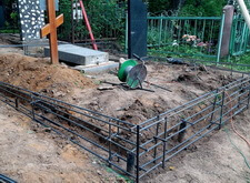 Вкопанные ранее сваи послужили великолепной основой для металлического каркаса, который мы и сварили прямо на территории места захоронения. Каркас был установлен по периметру участка с целью придать дополнительную жёсткость опалубке.