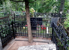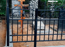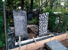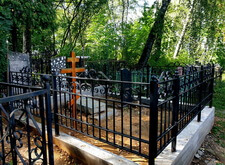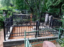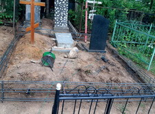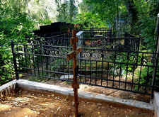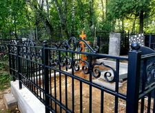 Затем наступил самый ответственный этап работы: монтаж ограждение. Работа по его установке опять-таки заняла достаточно долгое время, однако в результате чего по периметру могилы была установлена достаточно высокая статусная металлическая ограда, сразу же выделяющая место захоронения на фоне других участков. На фотографиях ниже представлен окончательный внешний вид могилы с разных ракурсов на момент завершения работ.