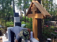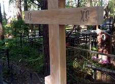 Дождавшись хорошей погоды мы вновь вернулись на могилу. Крест мы покрыли защитным составом, который исполняет одновременно защитную и влагоотталкивающую функцию.