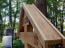 Первым делом мы решили обработать деревянный крест: с него сняли навершие а затем тщательно отшлифовали.