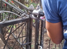 Фотоотчет далее позволит проследить за очередностью работ. Первым делом мы установили крест и восстановили целостность ограды.