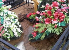 Исходное состояние: Холмик, крест, венки и простая ограда