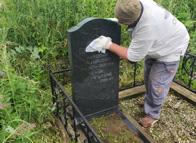 Уборка травы и мойка памятника