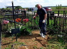 В данном заказе мы столкнулись с достаточно запущенной могилой: вся территория места захоронения заросла травой. Клиент пожелал избавиться от неё, заказав у нас уборку.