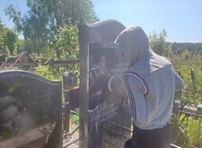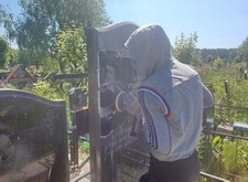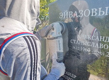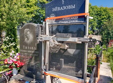 Замена двух портретов на памятнике прямо на кладбище